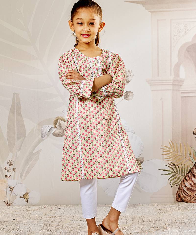 | Product Description | Features Beautiful Floral Screen Prints, Comfortable Three Quarter Sleeves, And Matching White Leggings. Made From Premium Cotton Fabric For Superior Comfort During Festivals And Daily Activities. |
