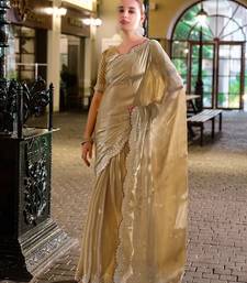 Beige embroidery work shimmer chiffon saree with unstitched blouse