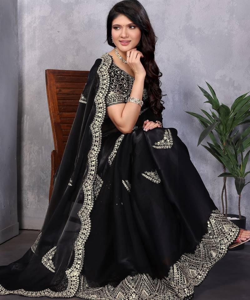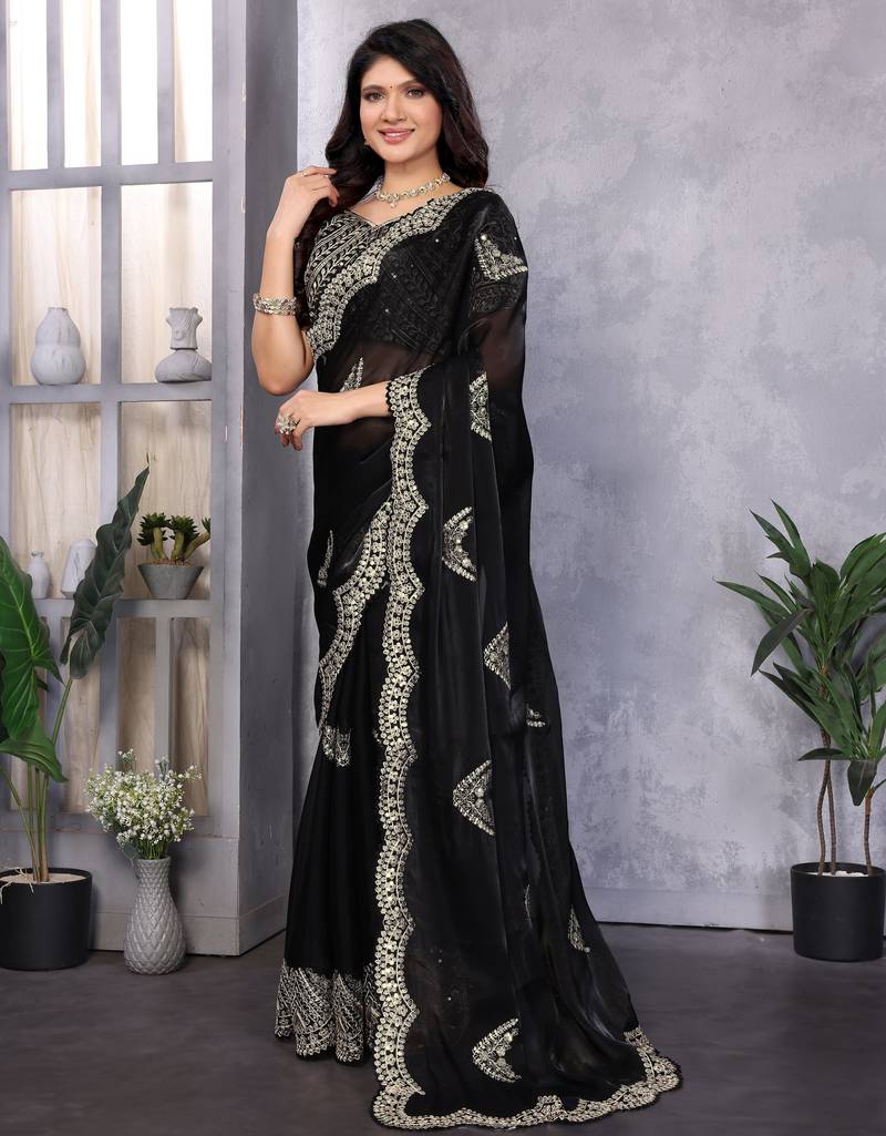 | Product Name | Black Embroidery Work Shimmer Chiffon Saree With Unstitched Blouse | |