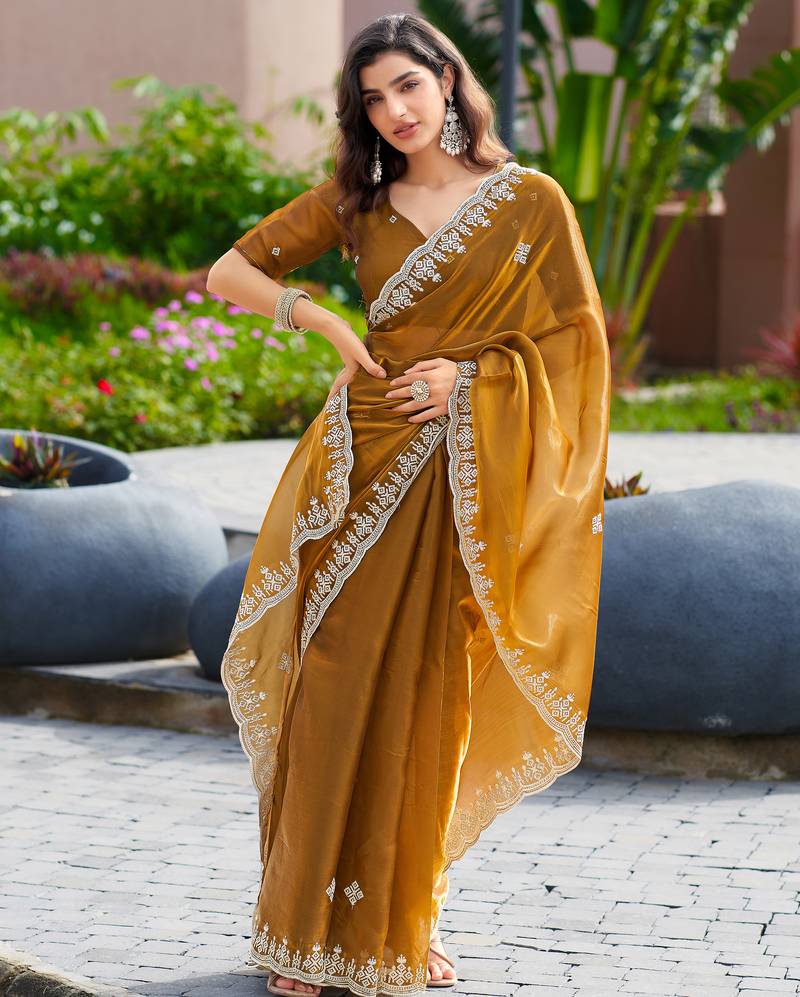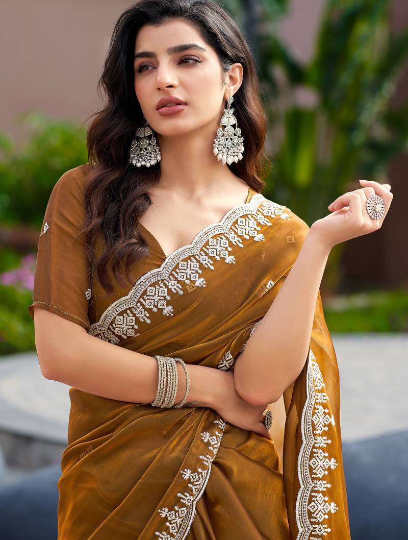 | Product Name | Brown Embroidery Work Shimmer Chiffon Saree With Unstitched Blouse | |