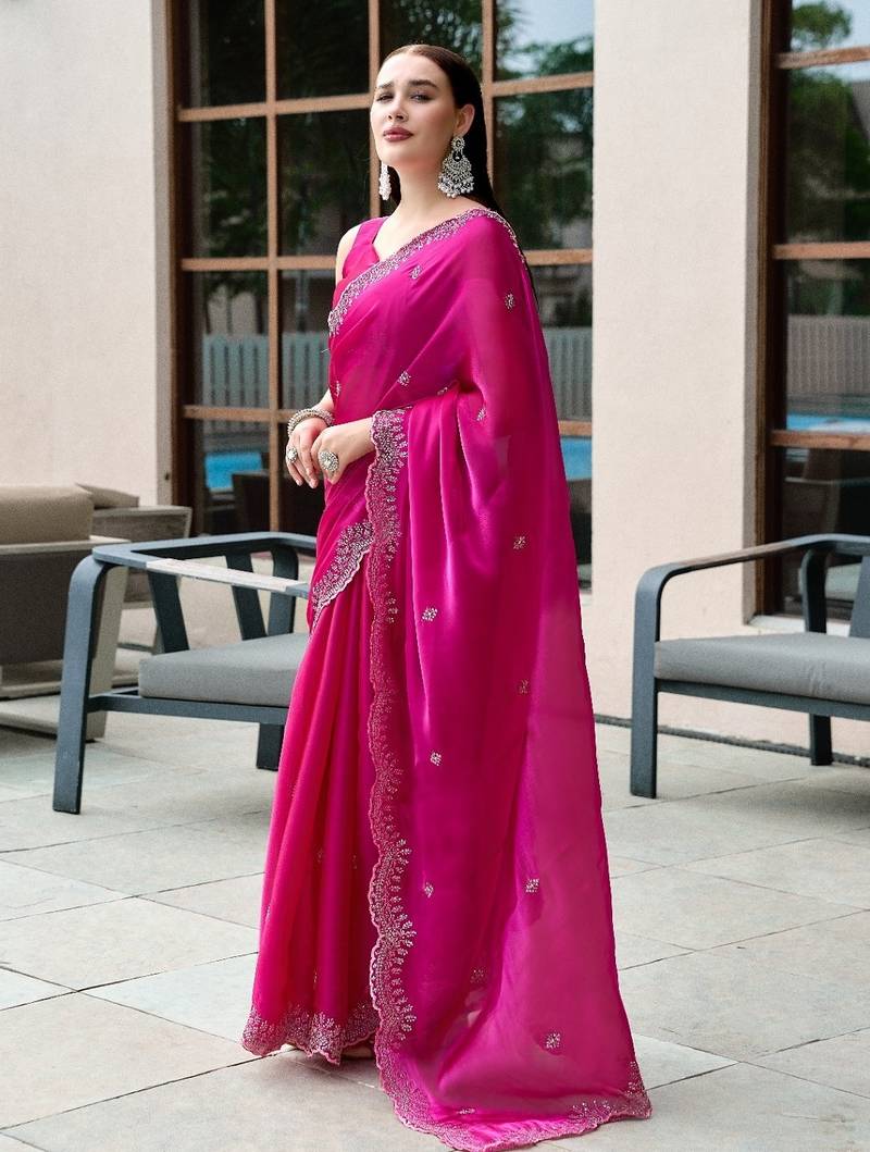 | Product Name | Pink Embroidery Work Shimmer Chiffon Saree With Unstitched Blouse | |