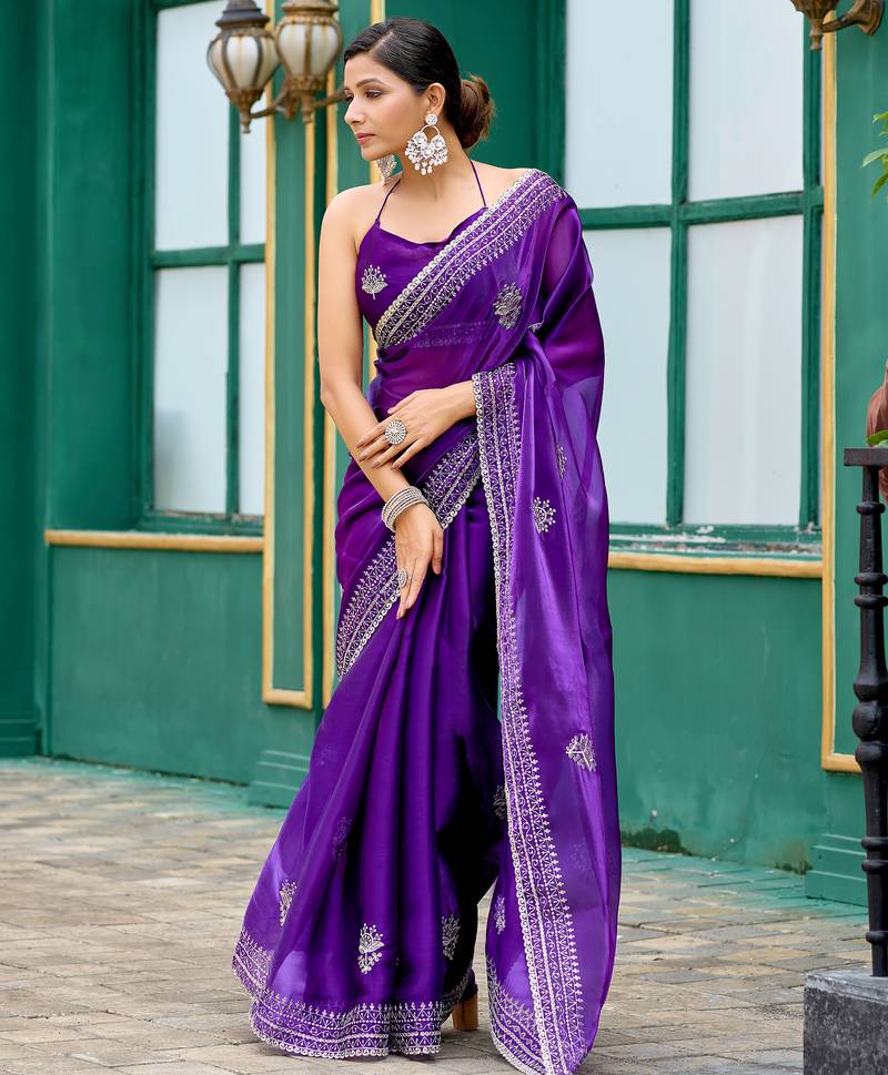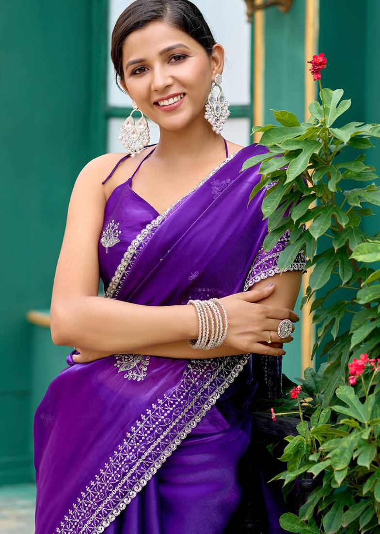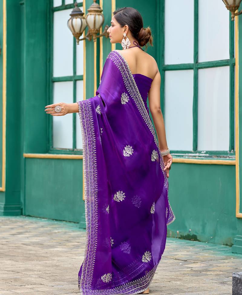 | Product Name | Purple Blue Embroidery Work Shimmer Chiffon Saree With Unstitched Blouse | |