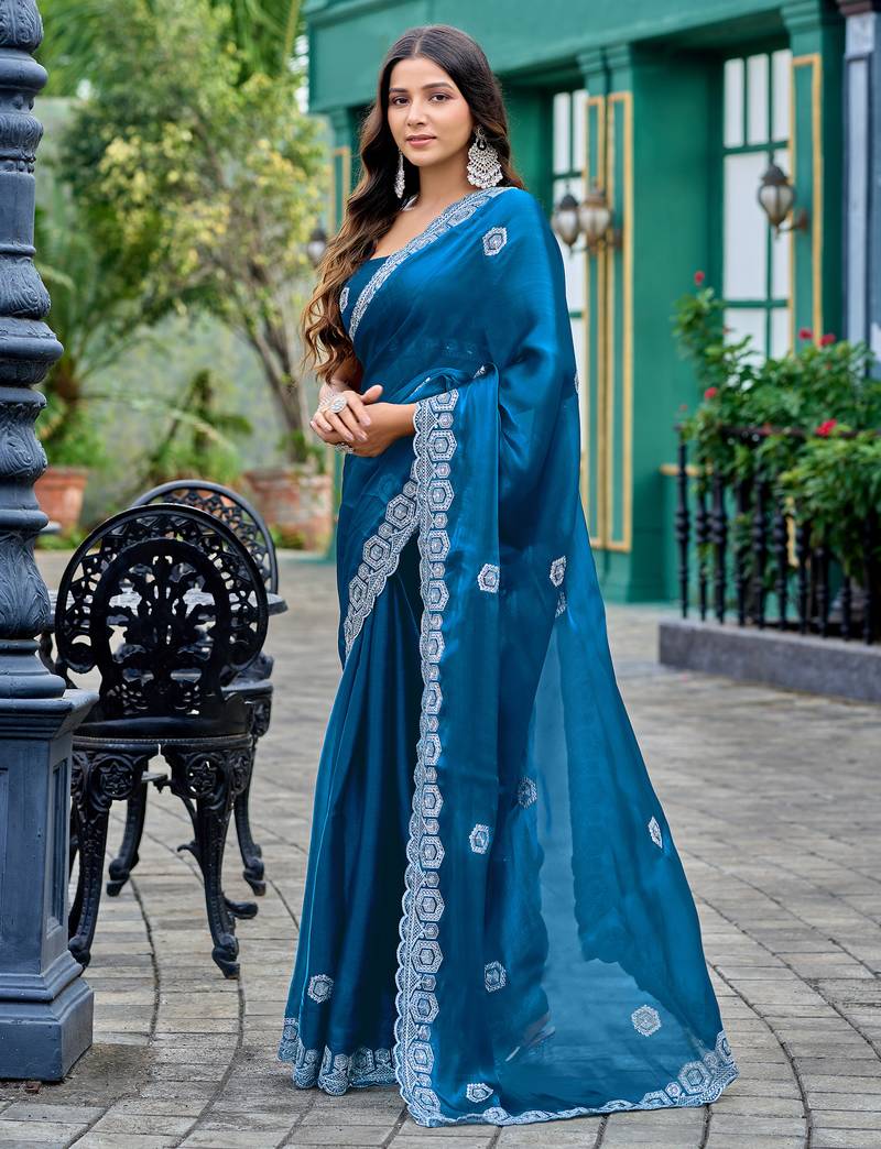 | Product Name | Teal Embroidery Work Shimmer Chiffon Saree With Unstitched Blouse | |