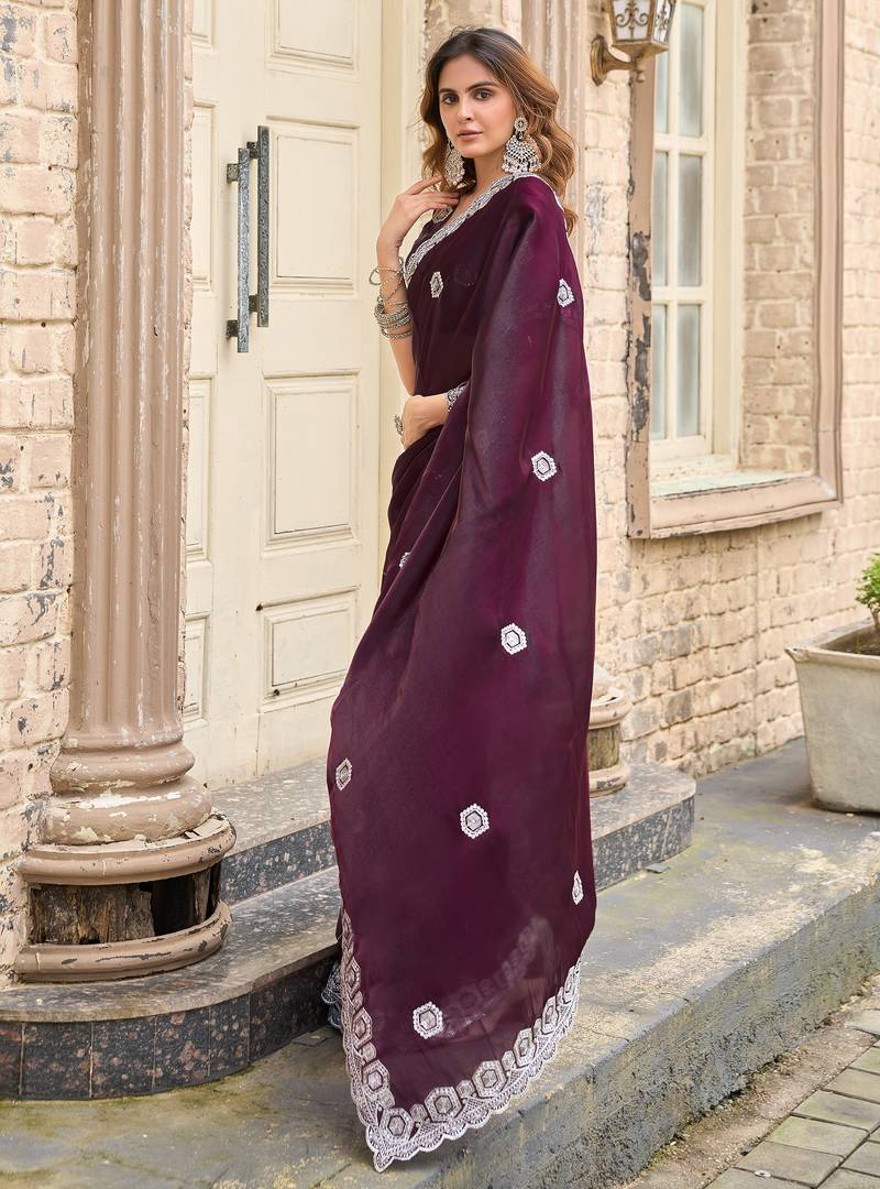 | Product Name | Wine Embroidery Work Shimmer Chiffon Saree With Unstitched Blouse | |