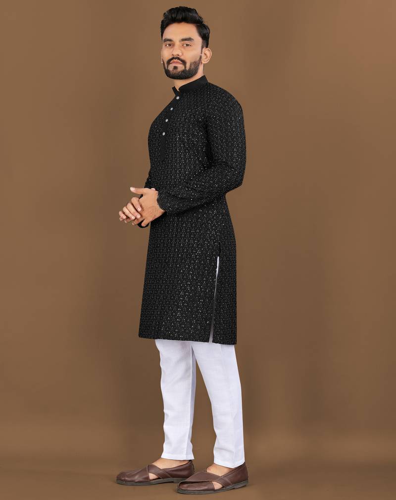 Product Name Black Rayon Embroidered Sqeuence Work Kurta Pajama Set