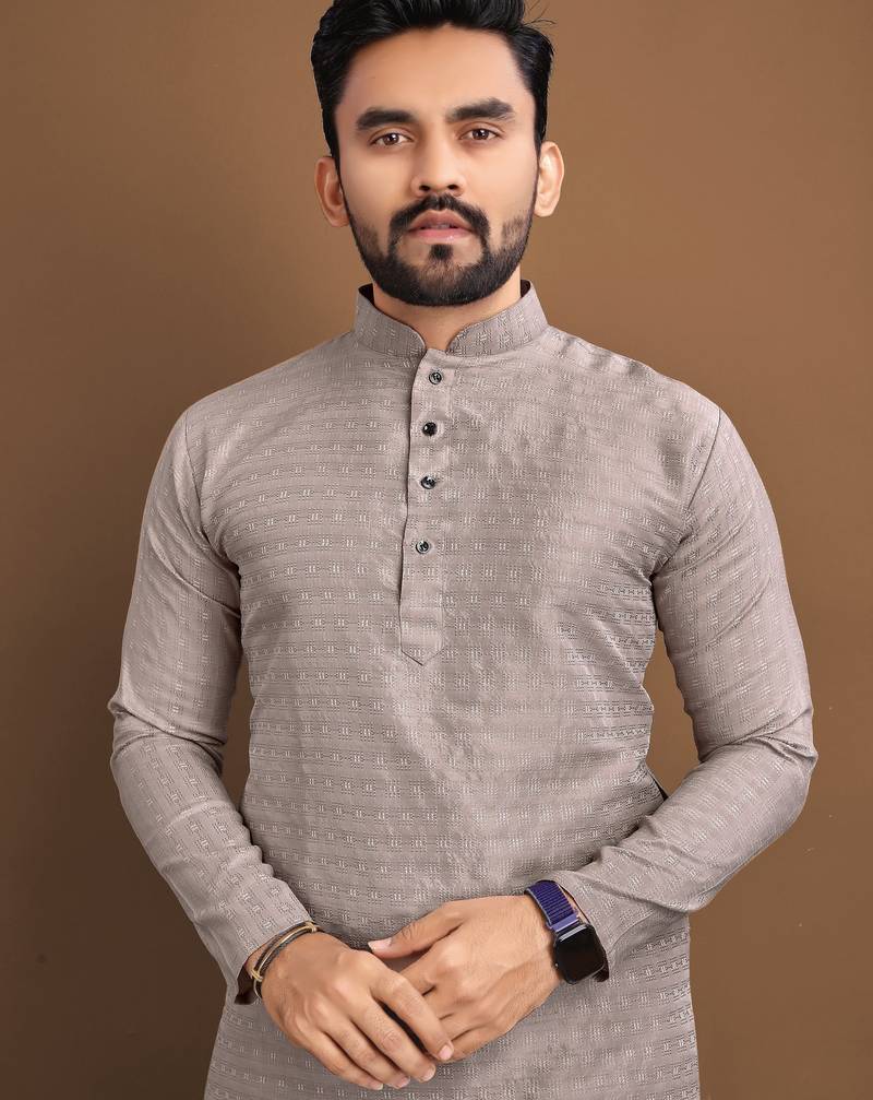| Product Description | Gray Self Design Jacquard Kurta Set For Men Discover Elegance Redefined With Our Gray Self Design Jacquard Kurta Set For Men, A Perfect Blend Of Traditional Charm And Modern Style. Meticulously Crafted From Premium Kurta Set For Men Fabric |