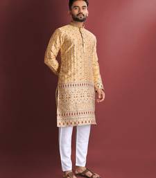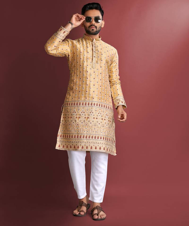 | Product Name | Light Orange Amboj Work Cotton Kurta Set For Men | |