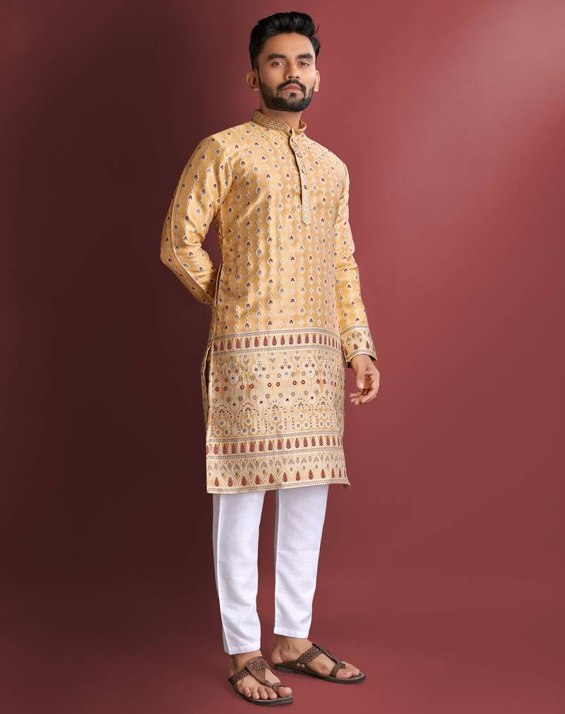 | Product Description | Light Orange Amboj Work Cotton Kurta Set For Men Discover Elegance Redefined With Our Light Orange Amboj Work Cotton Kurta Set For Men, A Perfect Blend Of Traditional Charm And Modern Style. Meticulously Crafted From Premium Kurta Set For Men Fabric |