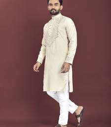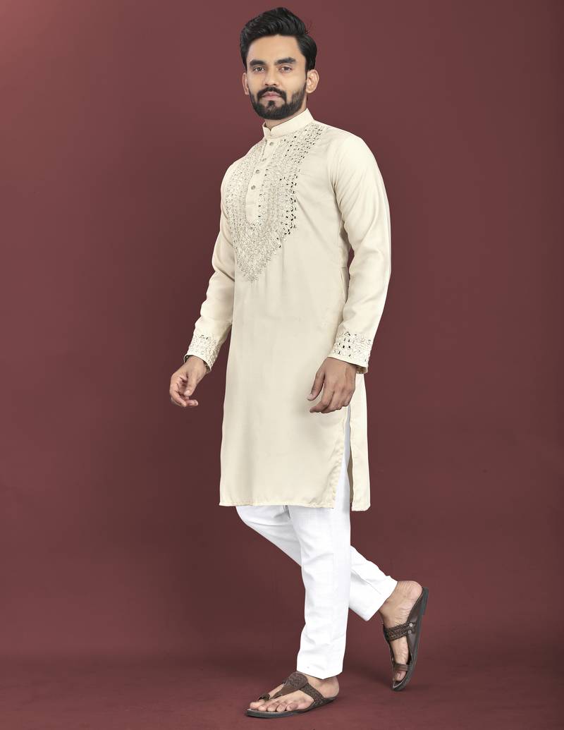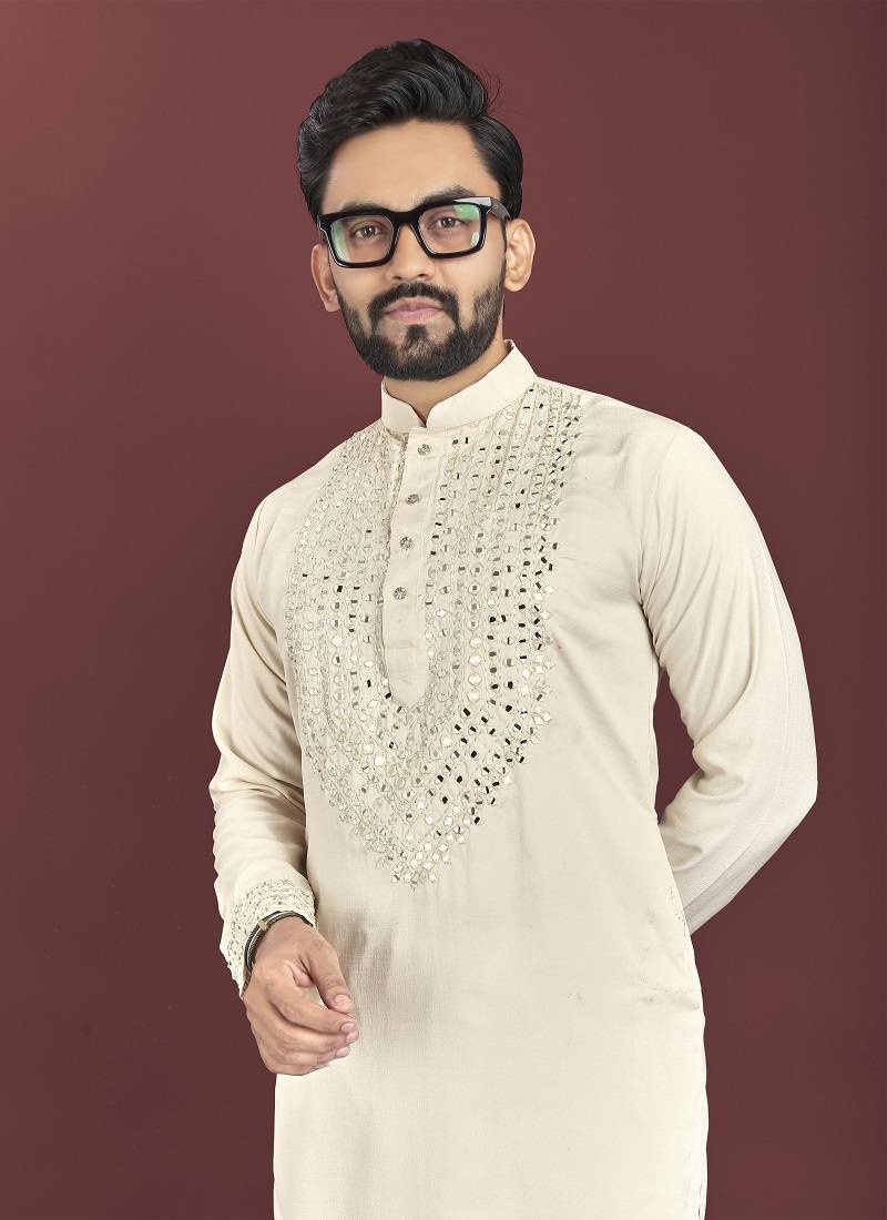 | Product Name | Off White Mirror Work Soft Silk Kurta Set For Men | |