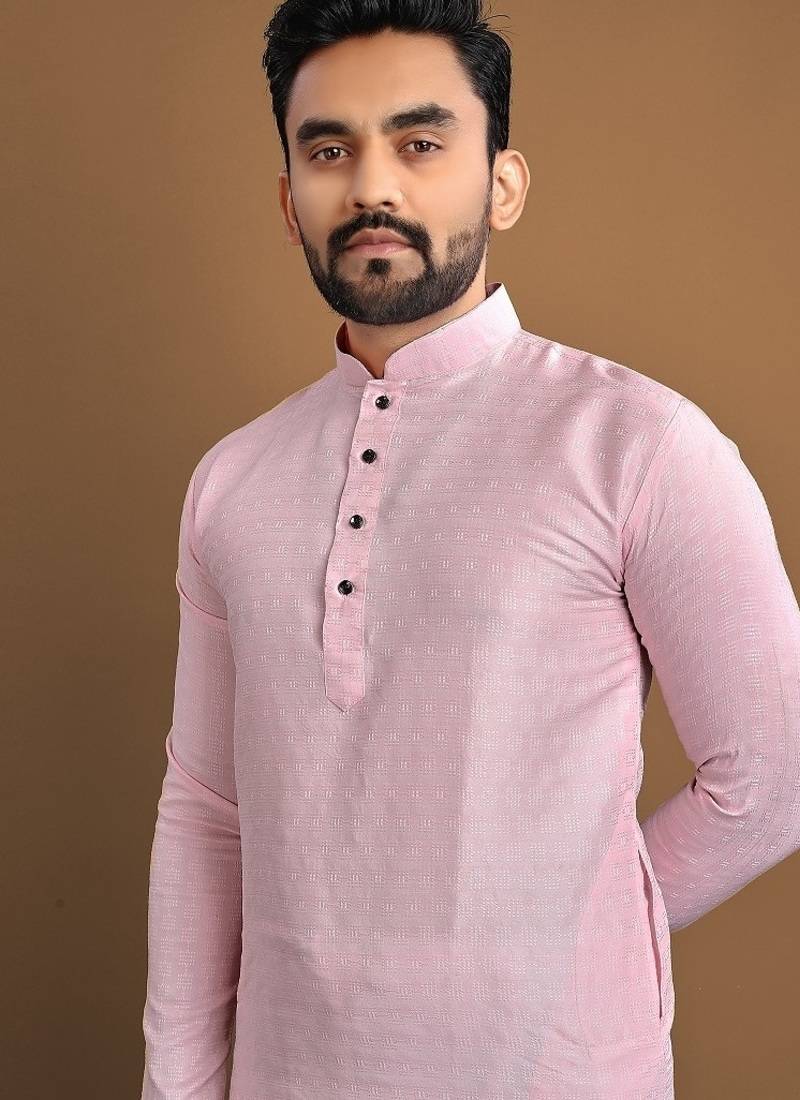 | Product Name | Pink Embroidered Jacquard Kurta Set For Men | |