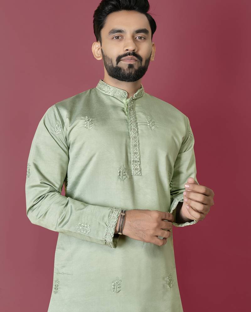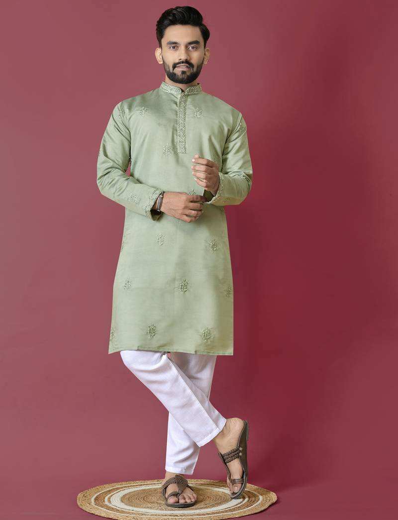 | Product Description | Pista Embroidered Roman Silk Kurta Set For Men Discover Elegance Redefined With Our Pista Embroidered Roman Silk Kurta Set For Men, A Perfect Blend Of Traditional Charm And Modern Style. Meticulously Crafted From Premium Kurta Set For Men Fabric |