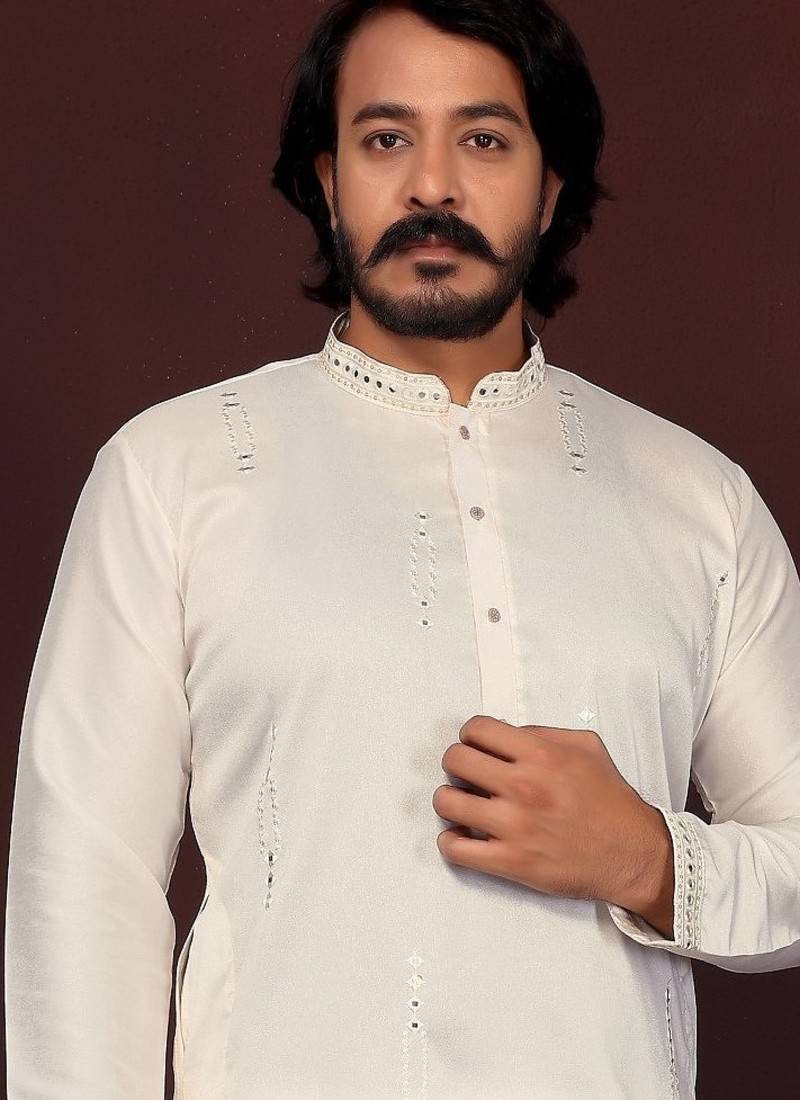 | Product Name | White Embroidered Silk Kurta Set For Men | |
