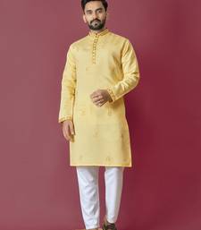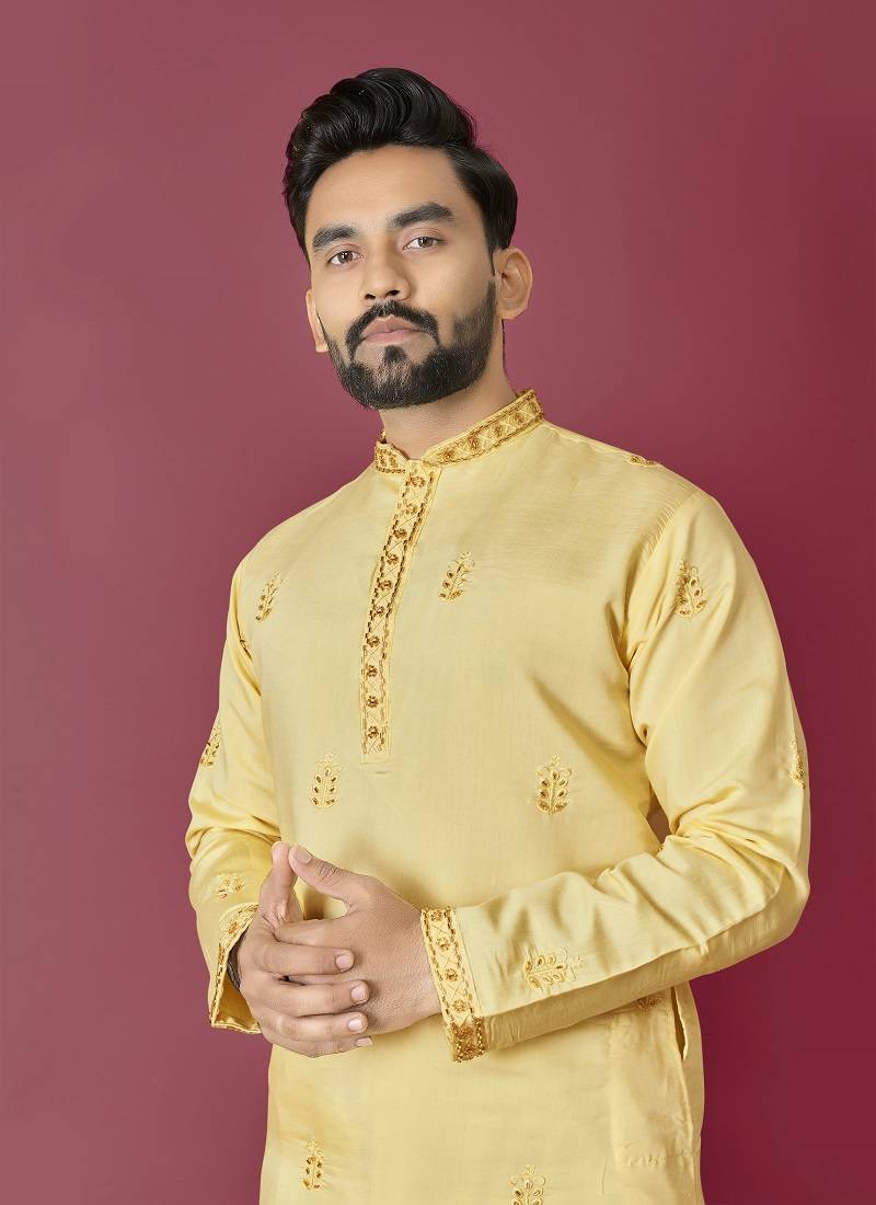 Product Name Yellow Moti Hand Work Roman Silk Kurta Set For Men