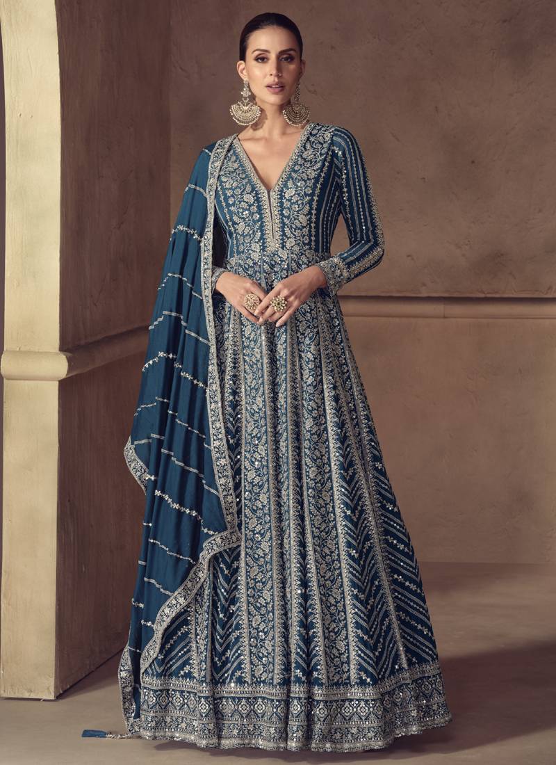 | Product Name | Blue Chinon Silk Embroidered Designer Anarkali Suit | |