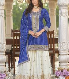 | Product Name | Blue Chinon Silk Embroidered With Digital Print Sharara Suit | |