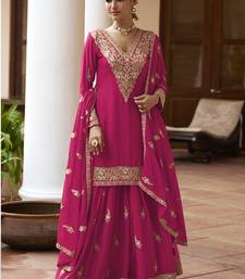 Pink chinon silk embroidered & handwork designer plazzo suit stitched