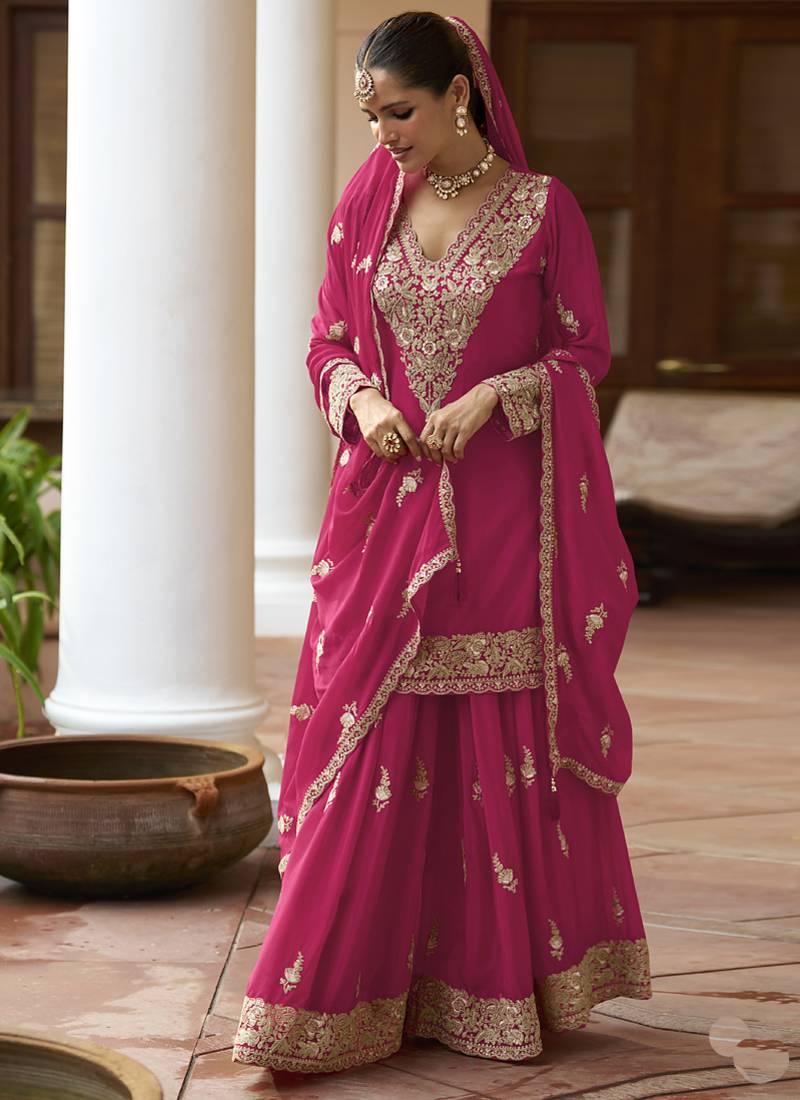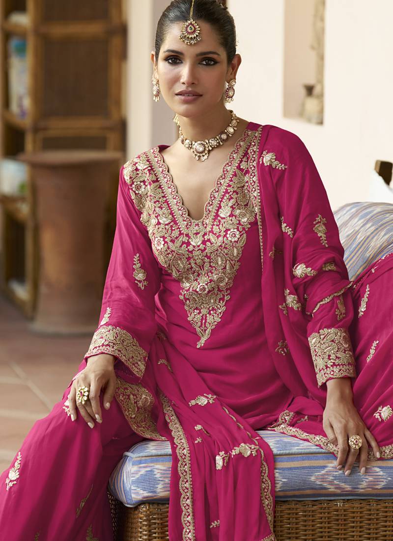 | Product Name | Pink Chinon Silk Embroidered & Handwork Designer Plazzo Suit | |