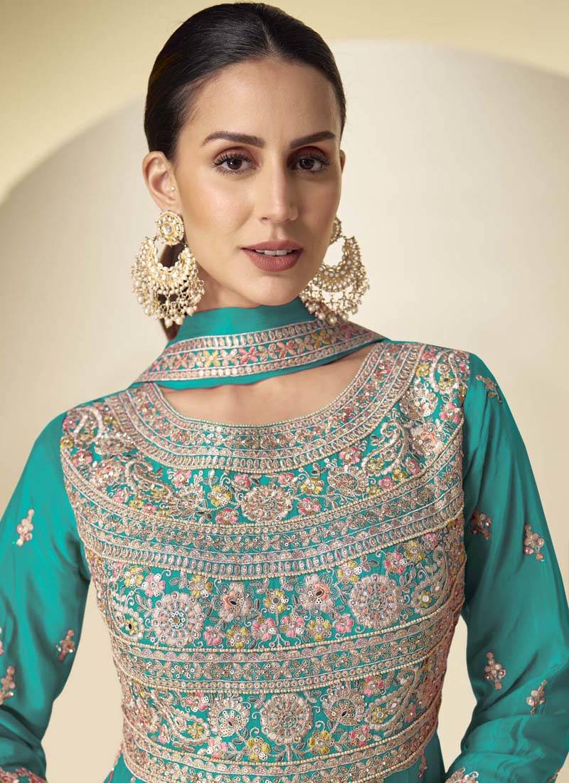 Product Name Turquoise Chinon Silk Embroidered Designer Anarkali Suit