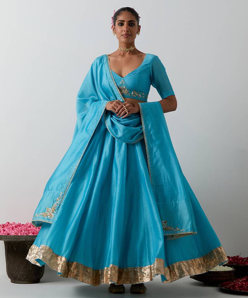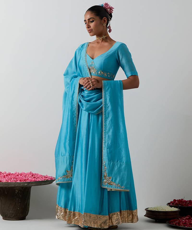 | Product Name | Blue Plain Chanderi Lehenga Set | |
