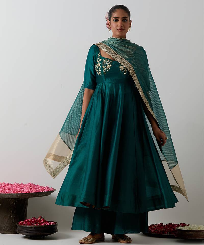 | Product Name | Green Embroidered Chanderi Anarkali Set | |