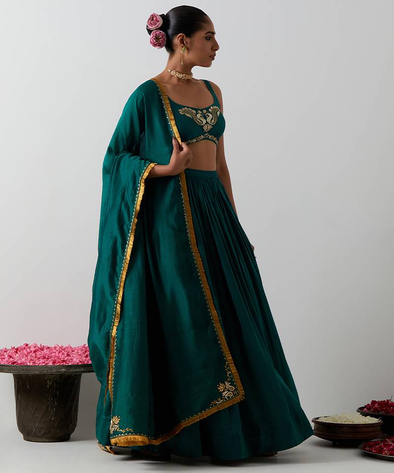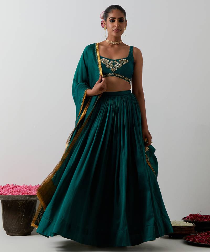 | Product Description | This Green Plain Chanderi Lehenga Set Brings Together Simplicity And Elegance In A Timeless Silhouette. Crafted From Soft, Lightweight Chanderi Fabric, It Offers A Graceful Flare And Subtle Sheen. Perfect For Festive Events, Weddings, Or Traditional Celebrations, This Ensemble Delivers Classic Charm With Comfortable, Understated Sophistication.