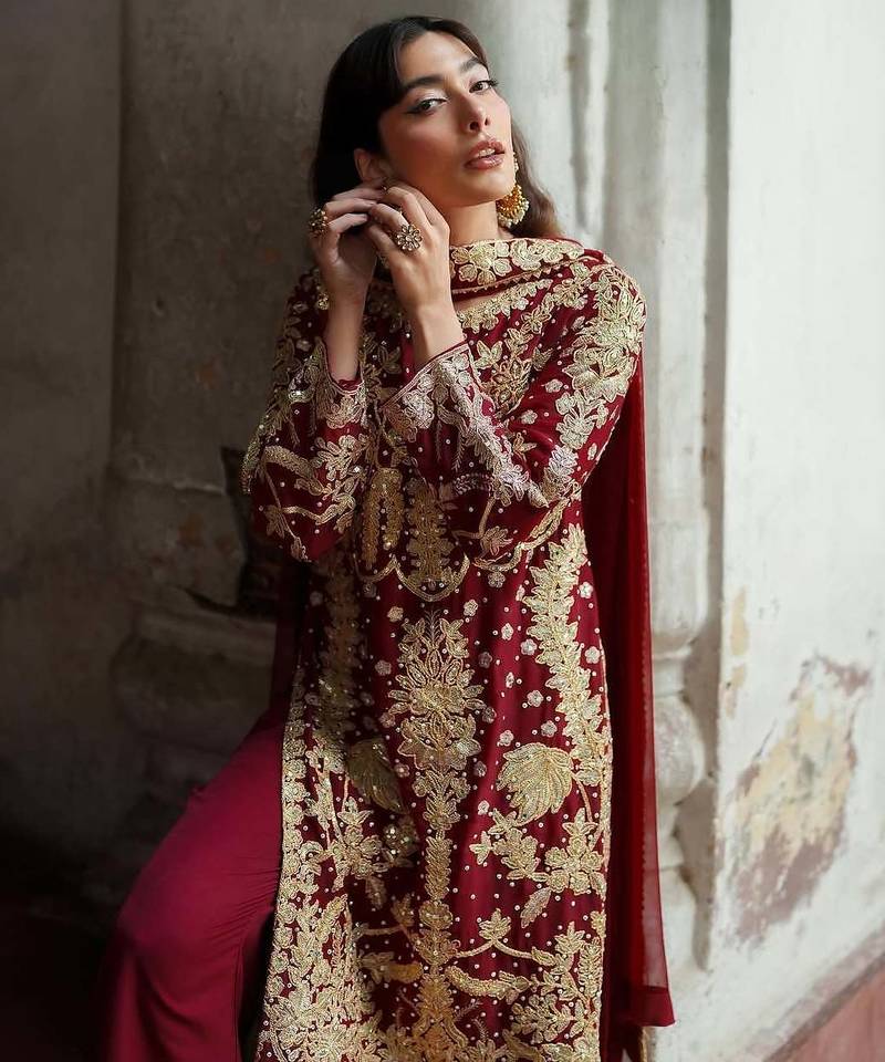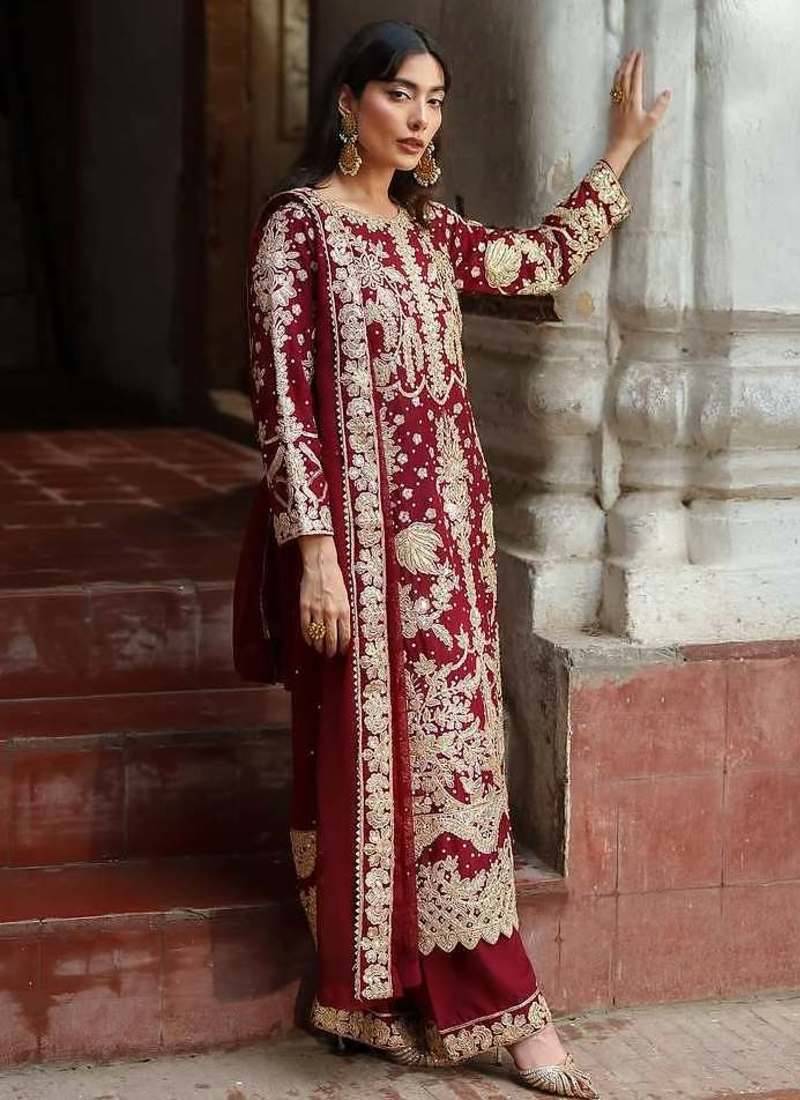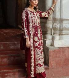 | Product Description | A Premium Maroon Designer Embroidered Suit Set Crafted In Faux Georgette With Heavy Sequence And Moti Work. Fully Stitched Top, Bottom And Dupatta Included — Perfect For Festive And Wedding Occasions. |