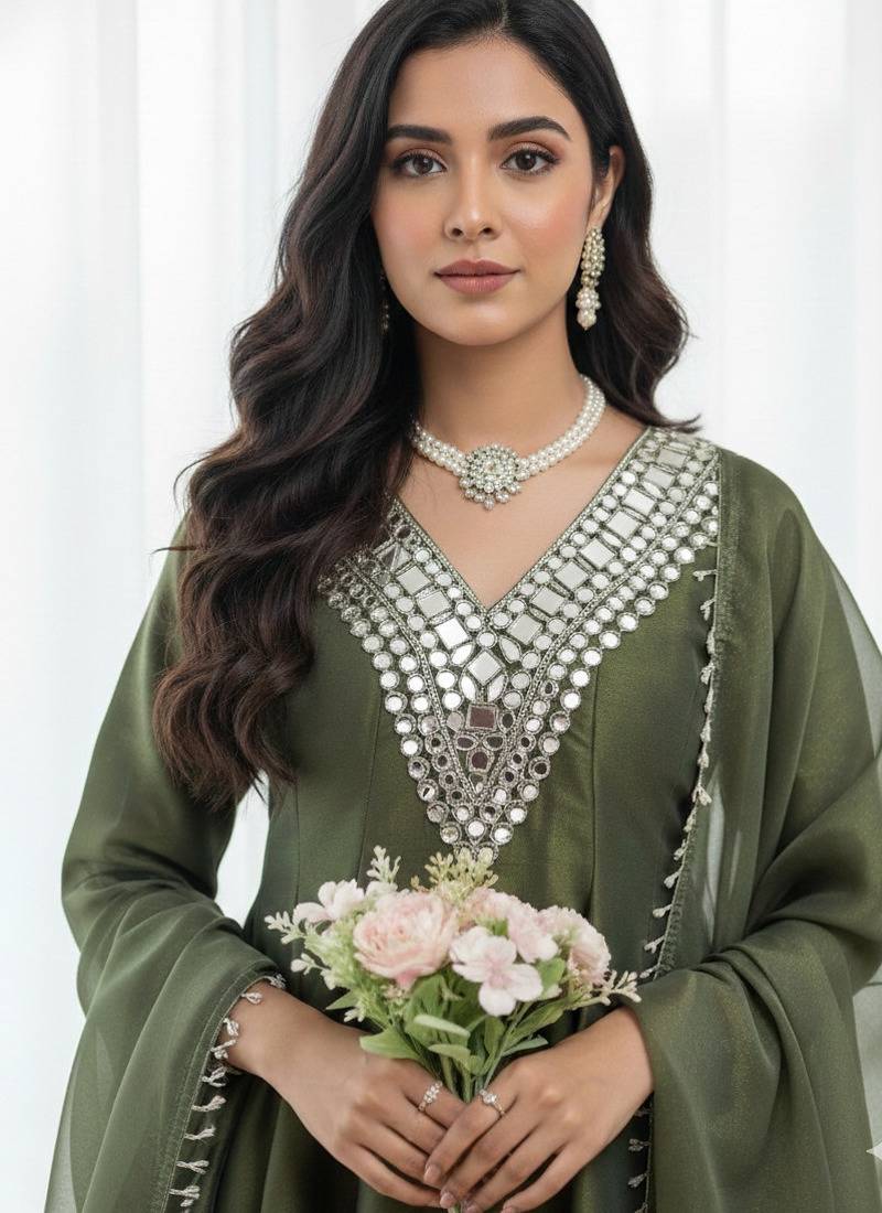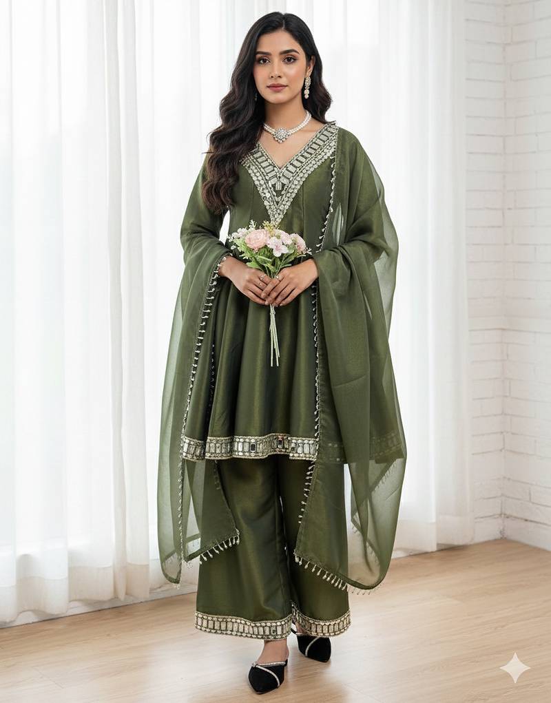 | • | Dupatta | : | Color- Green / Fabric- Silk |