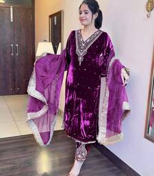 | Product Description | This Purple Velvet Suit Showcases Premium Craftsmanship With Thread Work, Sequins, Rivet Motifs And Golden Lace Highlights. The Rich Winter Perfect Shade Makes It A Standout Choice For Special Occasions. |