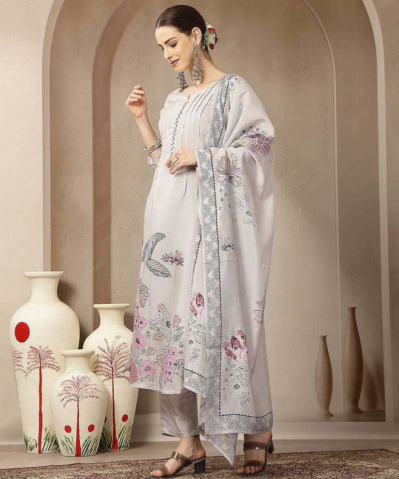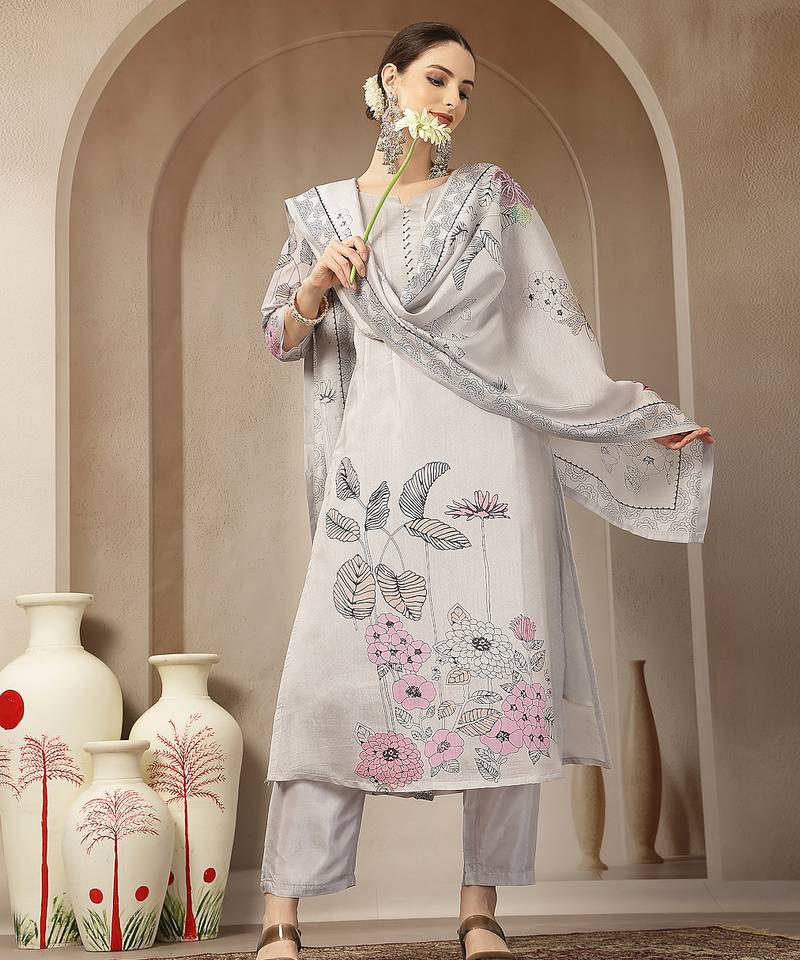 | Product Name | Mul Chanderi Light Grey Kurta Dupatt Pant Set | |