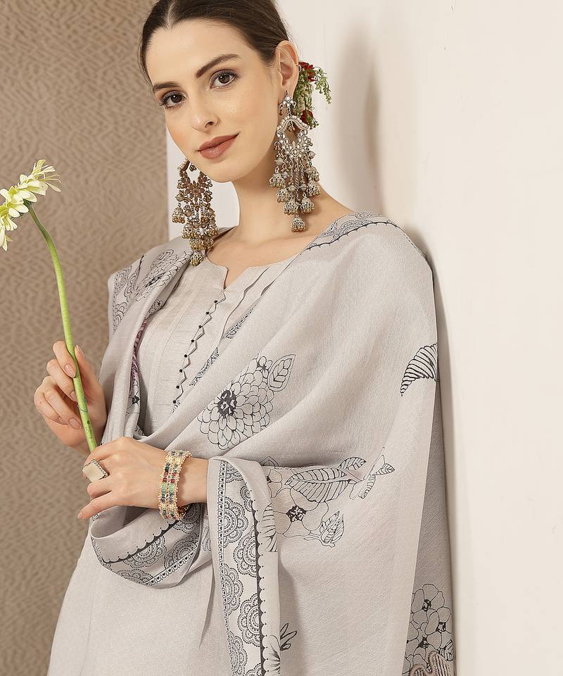 | • | Dupatta | : | Color- Grey / Fabric- Silk Blend |