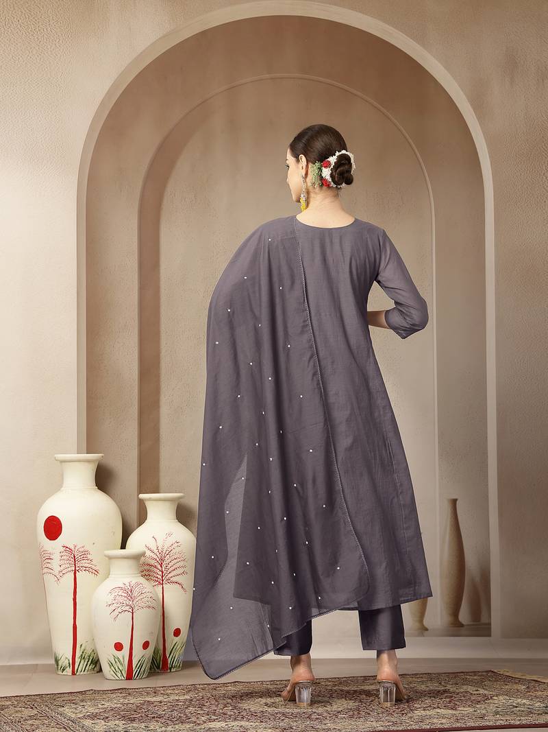 Product Name Purple Mul Chanderi Beads And Stones Mirror Work Kurta Dupatta Pant Set