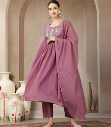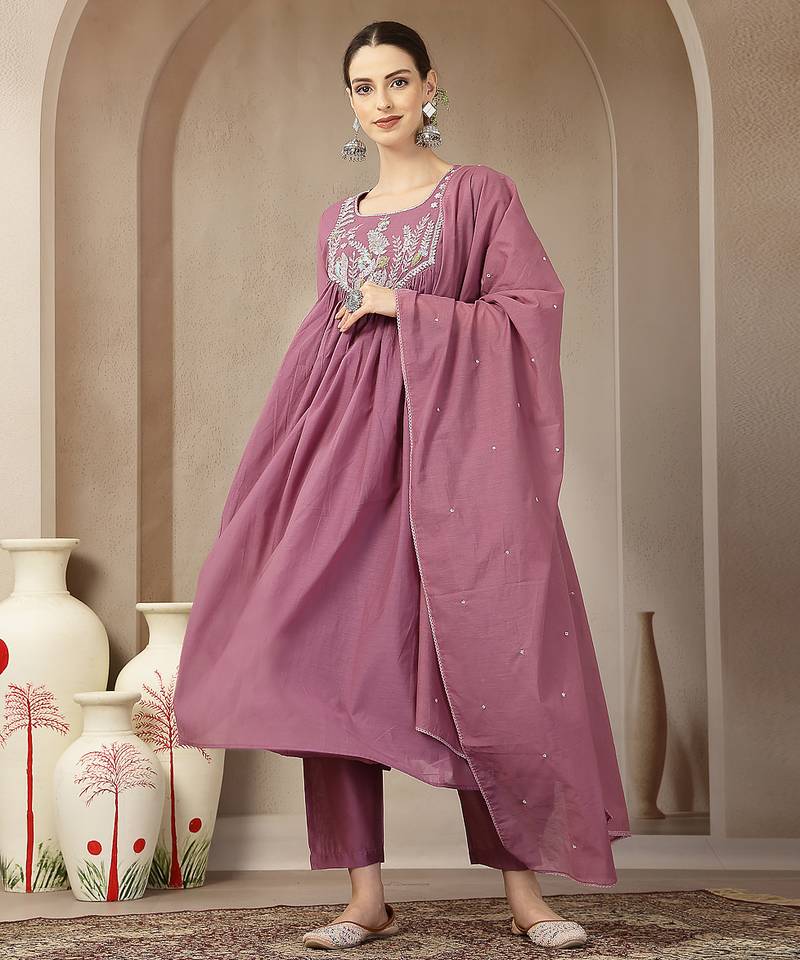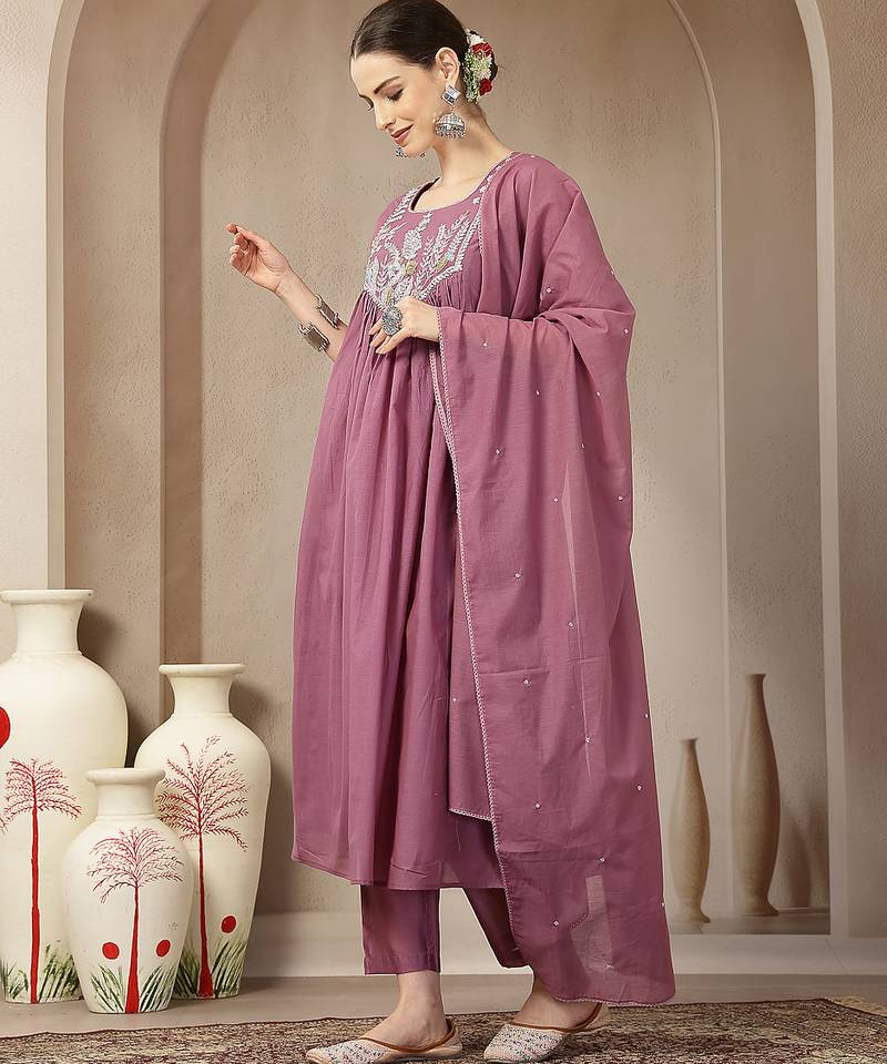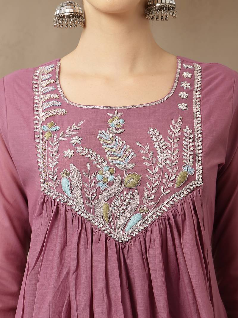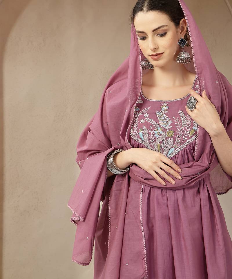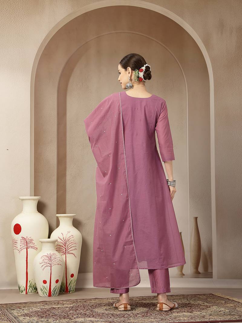 Product Name Purple Mul Chanderi Beads And Stones Sequins Work Kurta Dupatta Pant Set