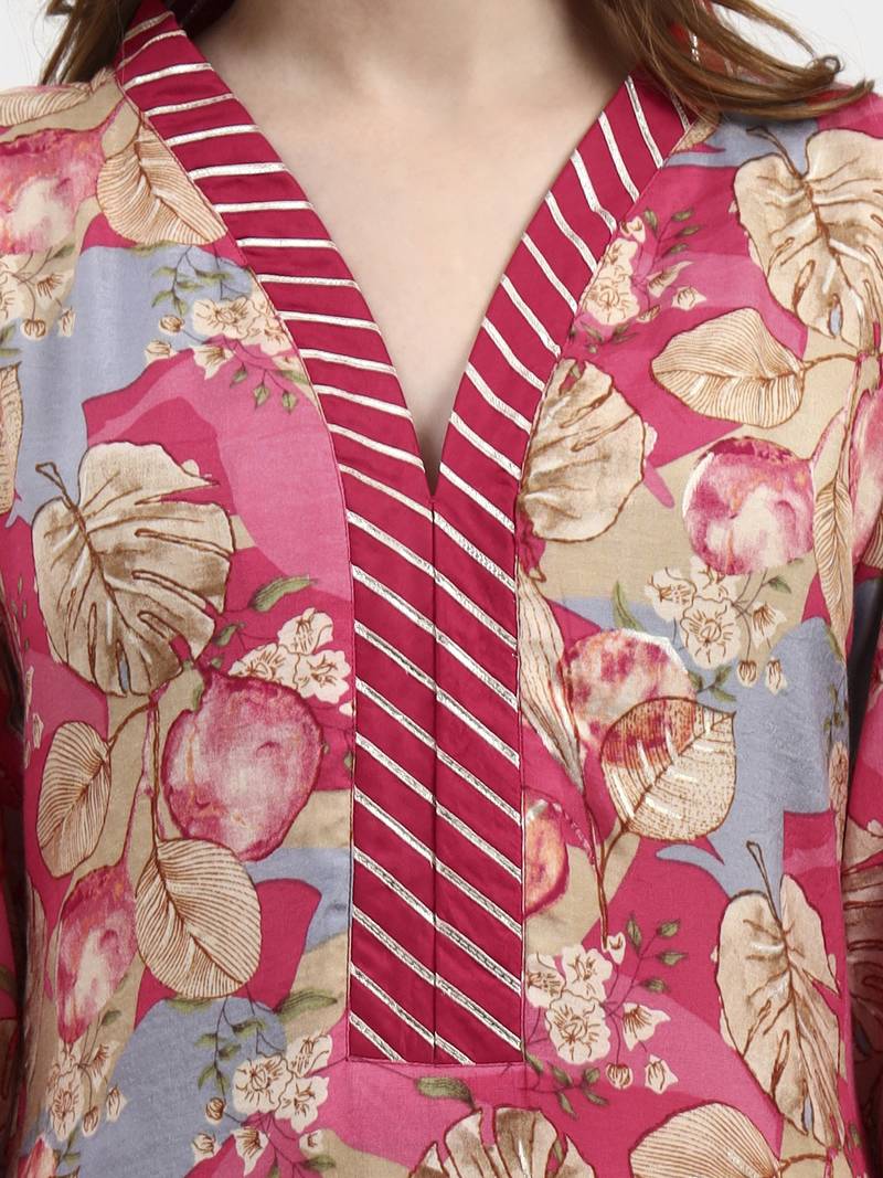 Red Silk Blend Floral Print A Line Kurta Trouser Dupatta Set Kurta Design A Line Shape Half Sleeve V Neck Knee Length Kurta Curved Him Machine Weave Silk Blend Trouser Design: Yellow Silk Blend Trouser Slip On Waist Size & Fit Material & Care Silk Blend