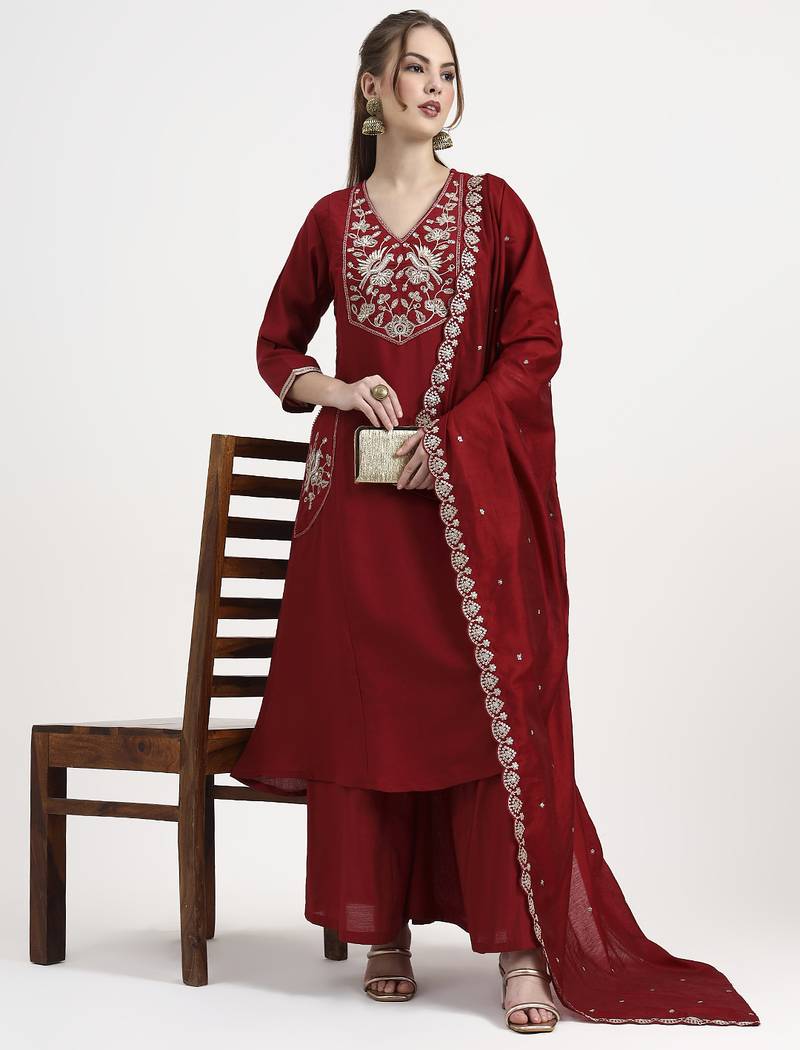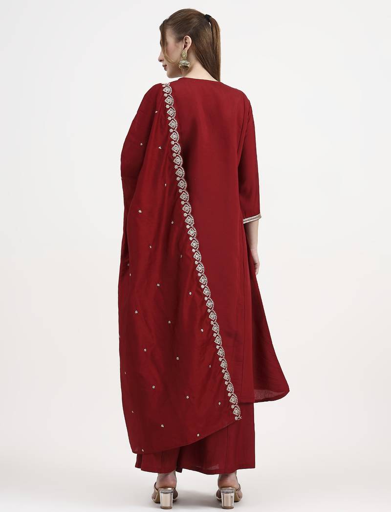 Roman silk maroon kurta dupatta palazzo set